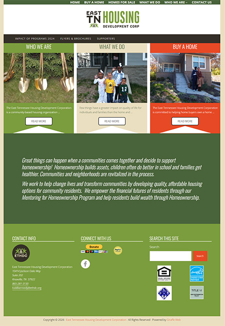 ETHDC is a community-based housing organization dedicated to expanding affordable homeownership and fostering sustainable neighborhood development throughout East Tennessee. Their mission spans affordable housing development, financial mentoring, and revitalizing communities – a commitment that deserved a digital presence as solid and personable as their work itself.